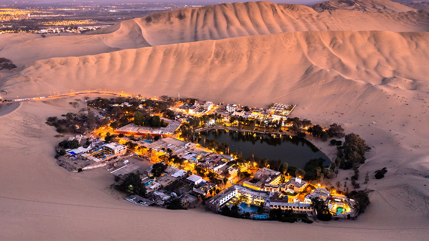 A spectacular natural oasis surrounded by immense golden dunes. Go sandboarding, ride in buggies, or relax by the emerald lagoon. A unique experience in the middle of the Peruvian desert.